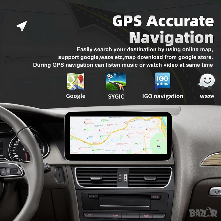 Поддържа всички навигации, съвместими с Android: IGO, WAZE, GOOGLE Maps и други