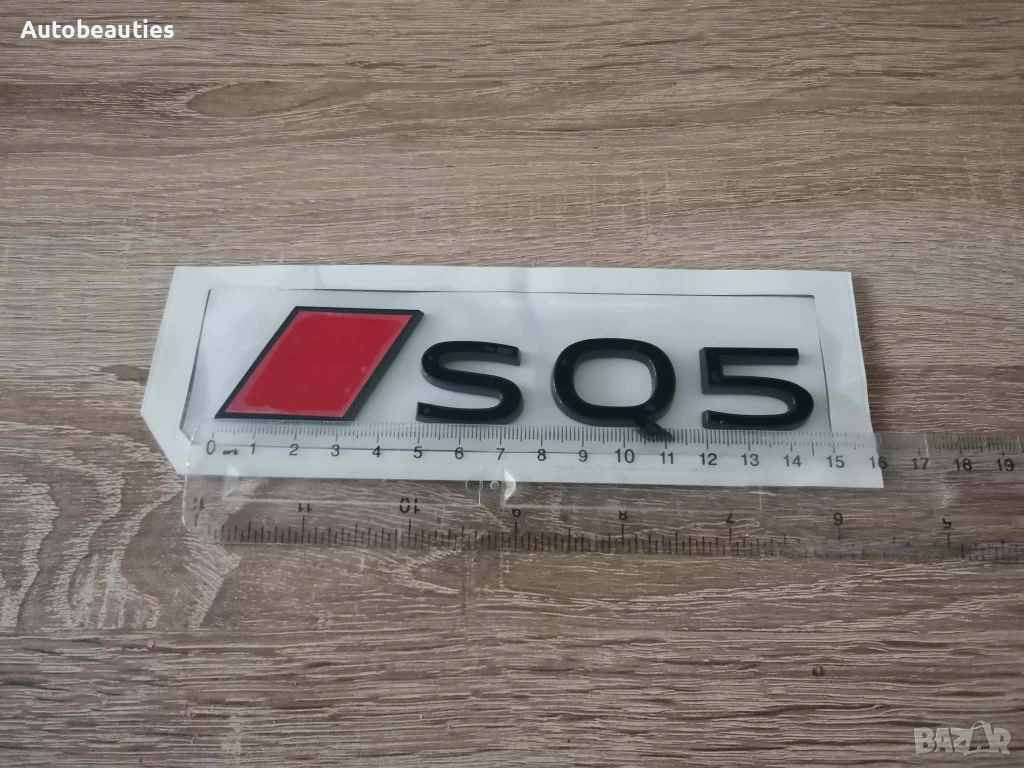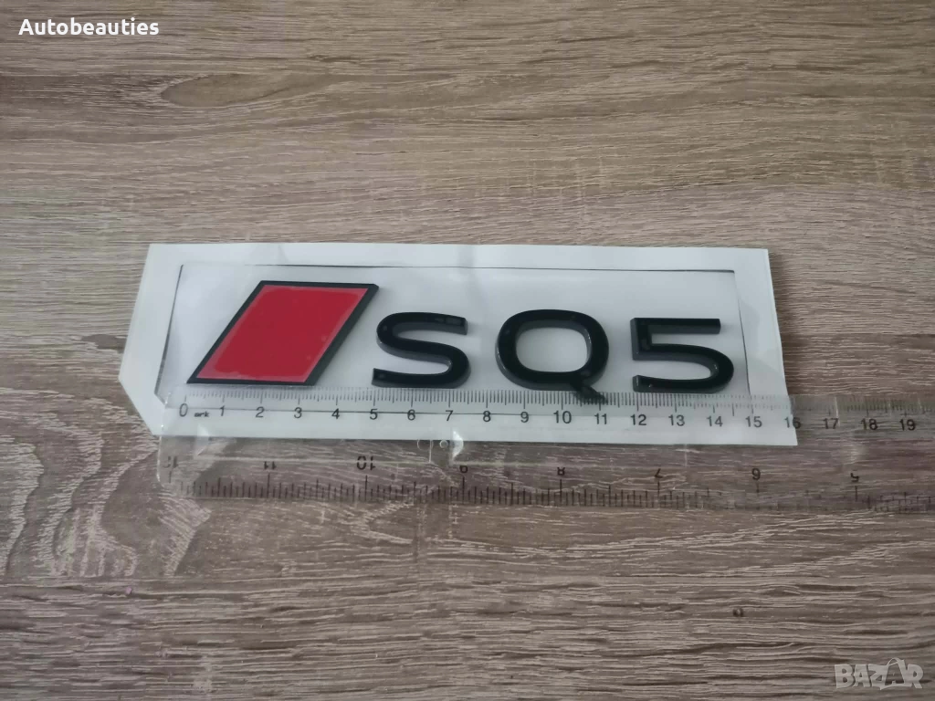 Нова емблема за Audi SQ5 в най-новия стил (след 2023г) в черно с червено. Размерите са дадени на снимките.