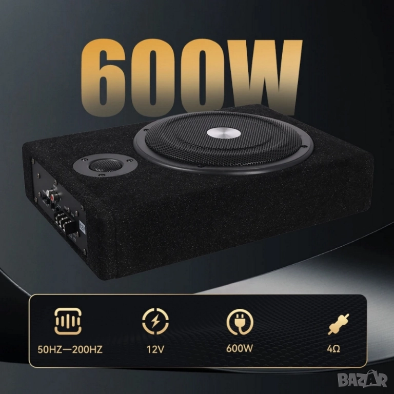 - Отлична производителност с номинална мощност от 200 вата и впечатляващата пикова мощност от 600 вата, позволяваща на този продукт да осигури силен и изключителен бас.