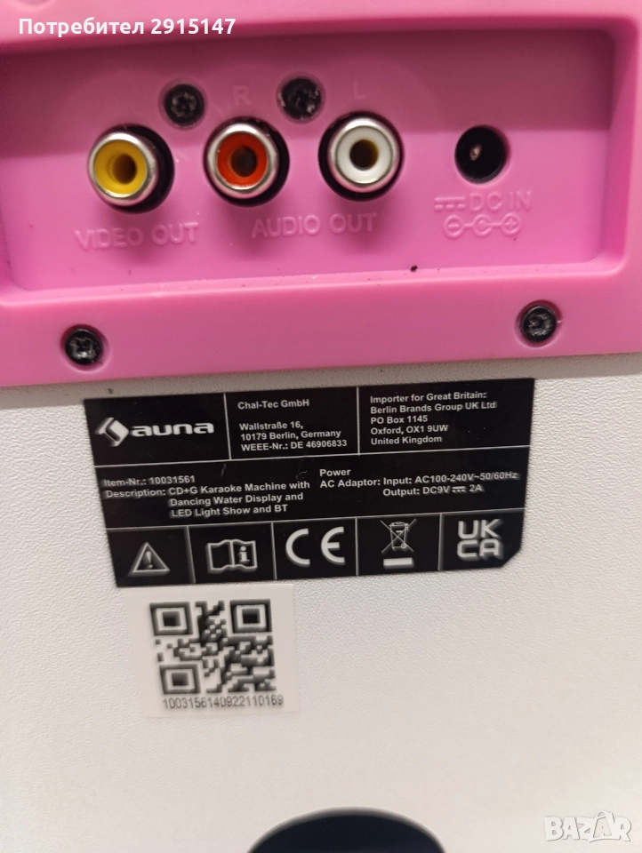 връзки: 1 х USB порт, 2 х 6,3 мм вход за микрофон, 1 х 3,5 мм жак AUX вход, 1 х чинч-видео изход, 1 х стерео-чинч-изход