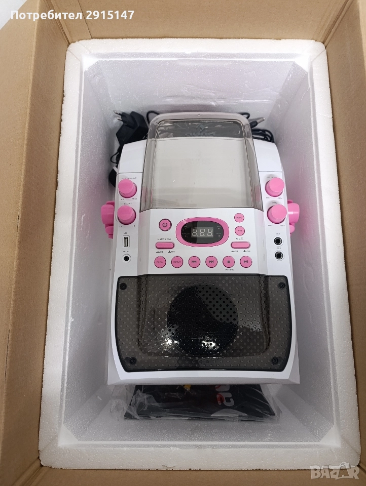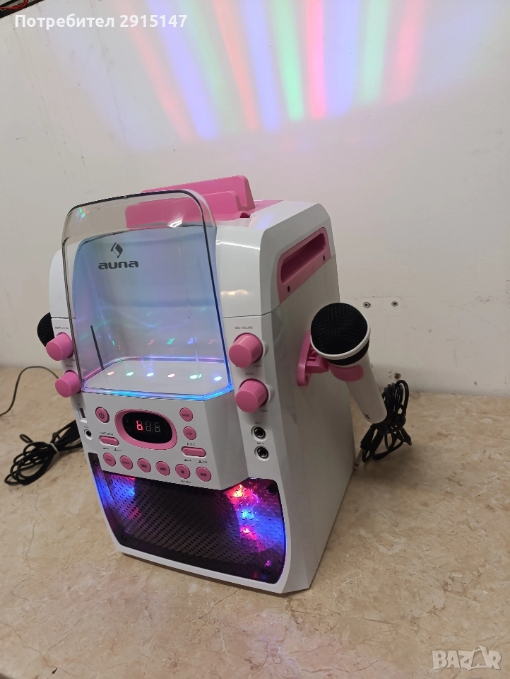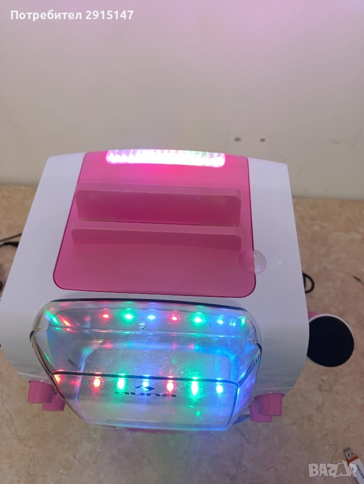 стилен дизайн: караоке устройство с многоцветен светодиоден ефект, чувствителен към музика, светлинно шоу и фонтан с вода
