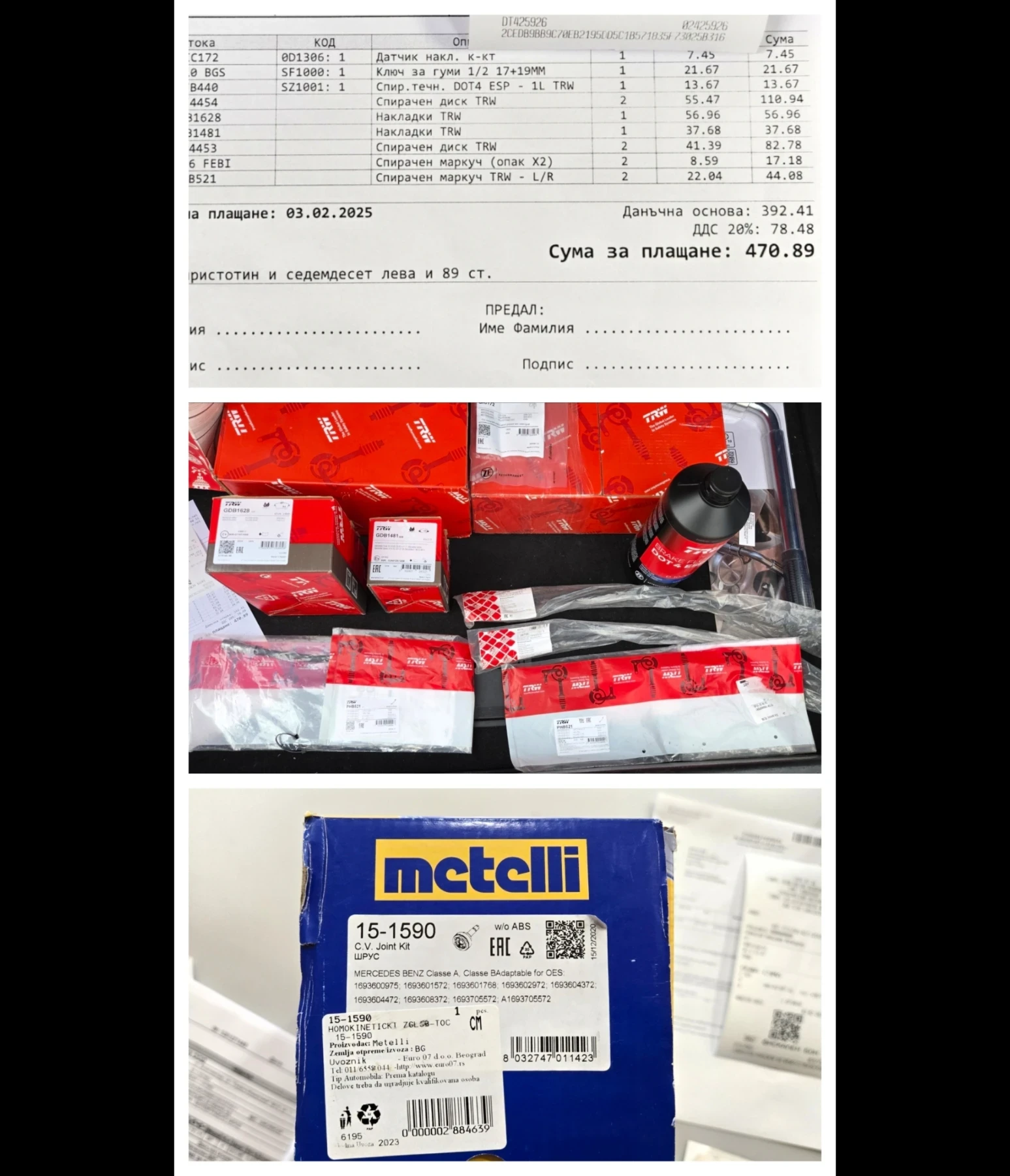 Поддържан автомобил. Продава се, защото закупихме друга B class. И не ни трябва повече. Автомобила се обслужва навреме с най-високия клас масло 5W40 MB 229. 52 MO и висок клас филтри. Сменени са следните неща: 1. Масло на скоростите, с филтрите. 2. Управлението(мозъка) на скоростите е рециклирано. 3. Рециклирани са 4 дюзи също. 4. 4бр. амортисьори 4бр. пружини 4бр. тампони и прахоуловители. 5. 2бр. тампона на мотора и 1бр. на скоростите. 6. 4бр. дискове предни и задни, 4бр. накладки предни и задни, 4бр. спирачни маркуча предни и задни. Спирачна течност. 7. Решетка на предния капак. 8. Каре външно, ляво. 9. Ляв и десен фар. Сменени са, за да има по-добра видимост. 10. Комплект ролки с конзолата, плюс ремък. 11. Ролка алтернатор, свободен ход. Преди една седмица са сменени. 12. Маслото с филтрите е сменено преди 2000 километра. Клиенса е на ниво, поради смяната на пружините и амортисьорите. Повечето B class, са много ниски и създават доста проблеми на собствениците си. Тази има доста добра " стойка" и не се " влачи" по земята. Цената е повече от справедлива за състоянието на автомобила. Ако търсите точно такава кола, това е автомобила, който ще Ви служи дълго, защото е обслужен напълно и навреме. Има козметични забележки, лака е тръгнал на предния капак и на тавана, и има на задната броня и и на двата калника задните задрано, закачено. Трябва да се направят, неща които са поправими и са съобразени с цената. Пишете ми на VIBER при нужда и въпроси.