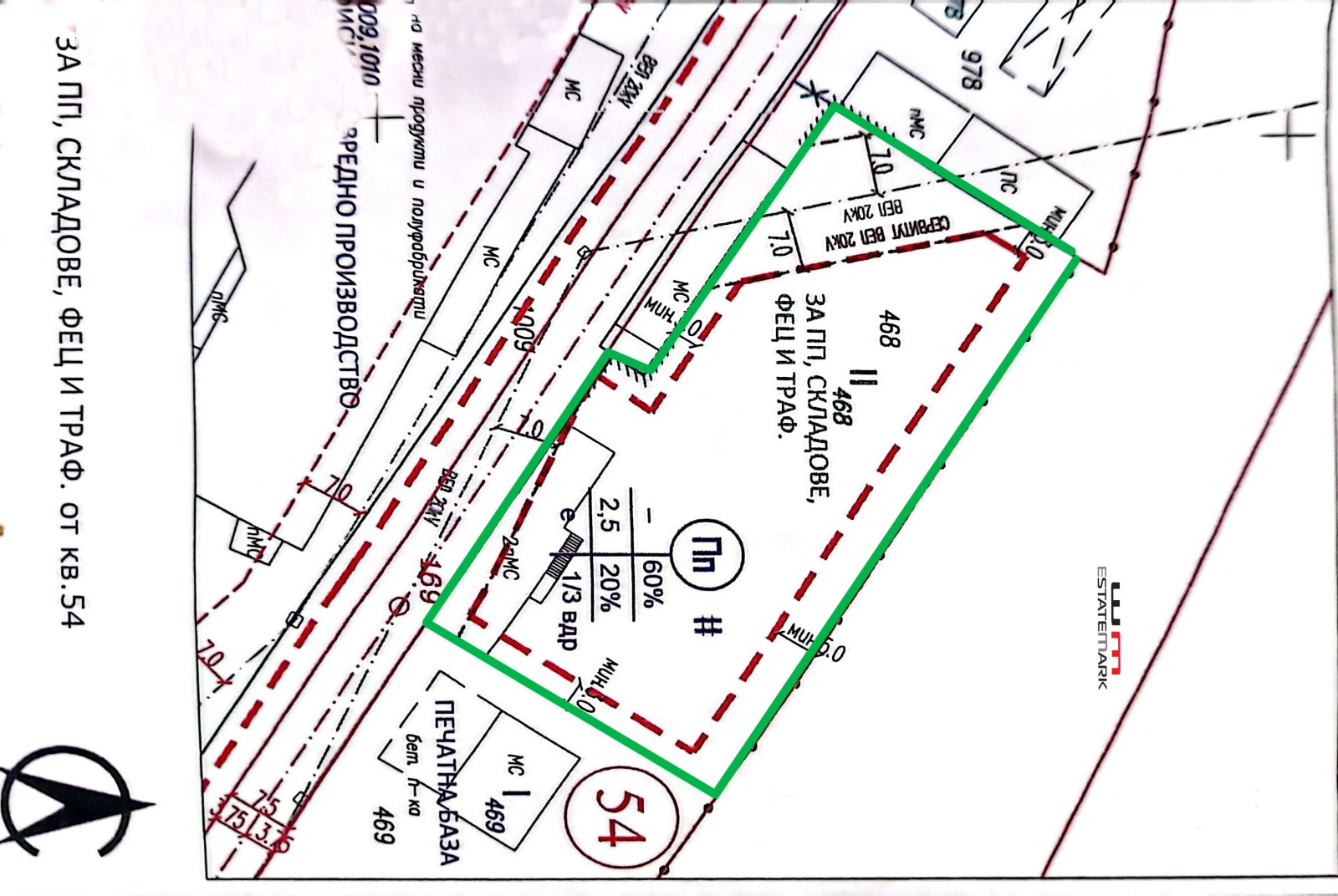 7.Слатина УПИ 5500 кв.м., Устройствена зона ПМС/може да се реализира и жилищна сграда върху терена/, цена: 5 млн. евро