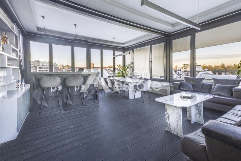 7 етаж панорамен бар с френски прозорци и 360 градусови гледки
