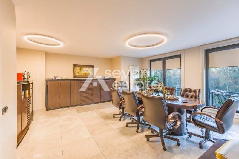 Голям представителен офис с работни помещения, зали за срещи, руфтоп бар, открити тераси, 2 кухни, зали за почивка, зала за фитнес.