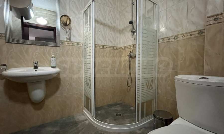 Апартаментът за продажба е 56.53 кв.м. и се състои от дневна с единично легло, една голяма спалня, баня с душ кабина и тоалетна, както и тераса със северно изложение.