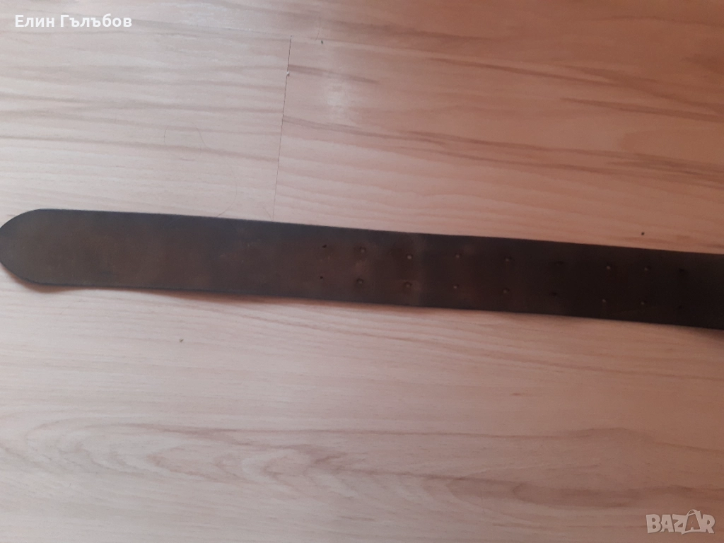 Офицерският колан и портупея са естествена кожа , но не мога да кажа със сигурност каква е кожата . Предполагам , че е телешка .