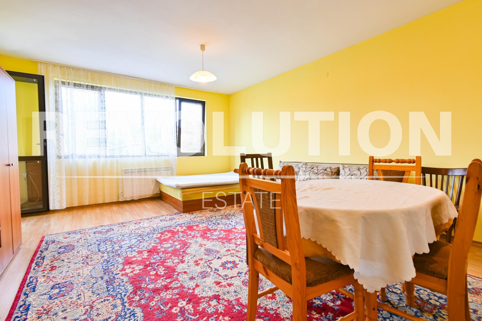 Светъл двустаен апартамент със слънчево южно изложение. Просторно разпределение с две отделни стаи и функционална кухня. Обзавеждането е съобразено с ежедневните нужди, а отоплението с ТЕЦ гарантира топлина. Включен е бърз интернет . Разположен в блок с поддържани общи части. Отлична локация до спирки за лесен градски транспорт .