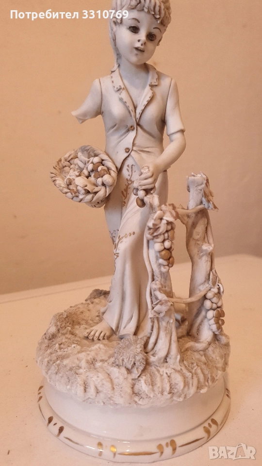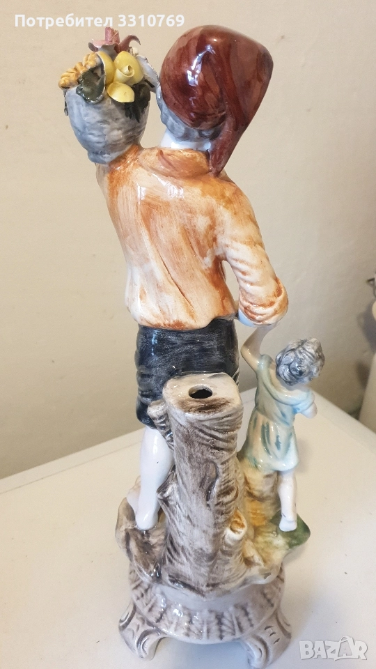 Снимки1 ÷3-ръчно изработена и рисувана порцеланова голяма статуетка на момче с кошничка цветя, височина Н=43см.,в стила на "Каподимонте ",без печат, без забележки, в отлично състояние,цена Ц=150лв Снимки4,5,6- ръчно изработена и рисувана статуетка с височина 21см.,маркировка "Каподимонте "(