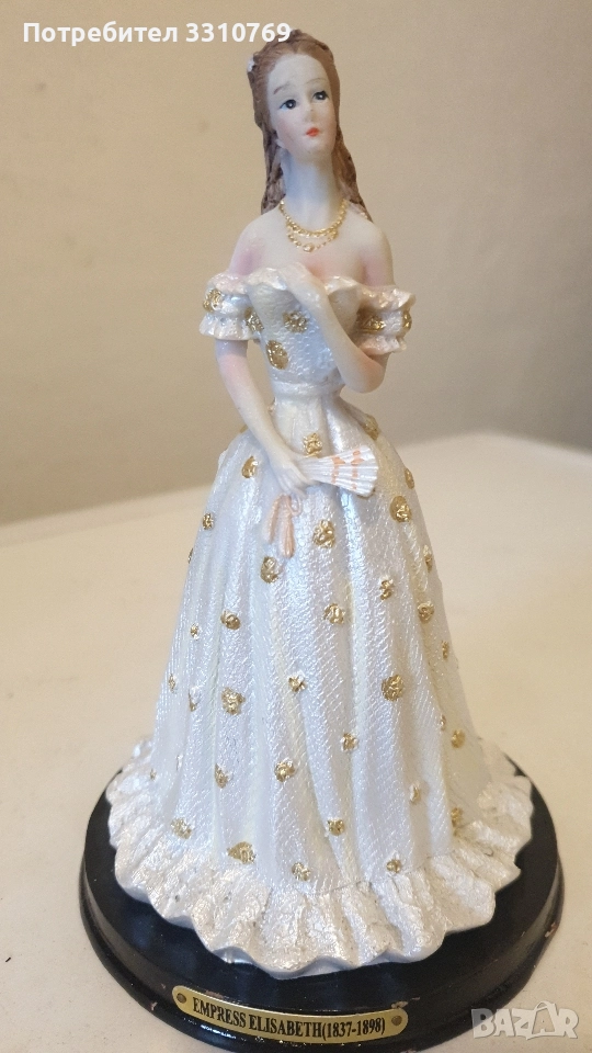 липсва част от ръка- за реставрация)с намалена цена 80лв. Снимки7,8,9- ръчно изработена и рисувана порцеланова статуетка на австрийската импера- трица "Сиси" с височина Н=16см.,маркировка ,без забележки, в отлично състояние, цена 45лв. Снимки10,11,12-ръчно изработена и рисувана от бисквитен порцелан, височина Н=15см.,шири- на 14см.,без печат, в отлично състояние,цена Ц=45лв. Снимки13,14- ръчно изработена и рисувана статуетка на Хуммел, височина Н =17см.,маркировка-"Гоебел"Западна Германия в отлично състояние, цена Ц =120лв. Снимка17,18- ръчно изработена и рисувана от фин костен порцелан, височина Н =24см., мар- кировка,в отлично състояние, цена 65лв. За колекционери и ценители на красотата на художествени изделия!