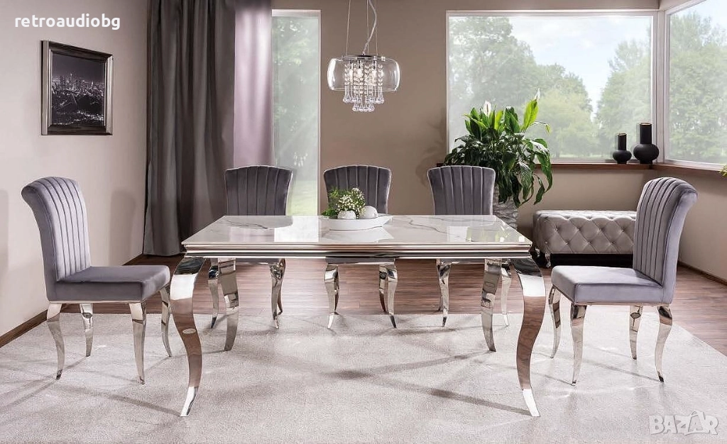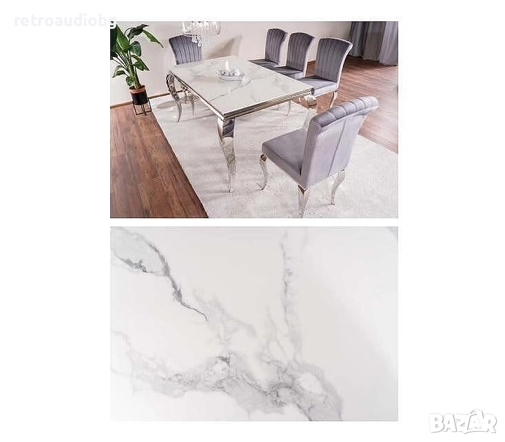 Трапезна маса ПРИНЦ 180x90 керамика бяла калаката - хром
