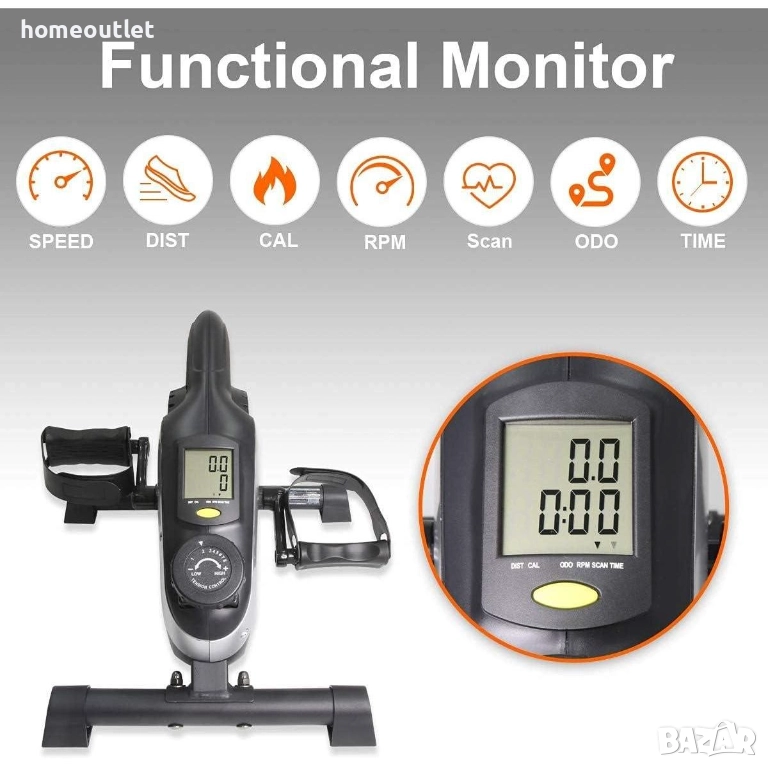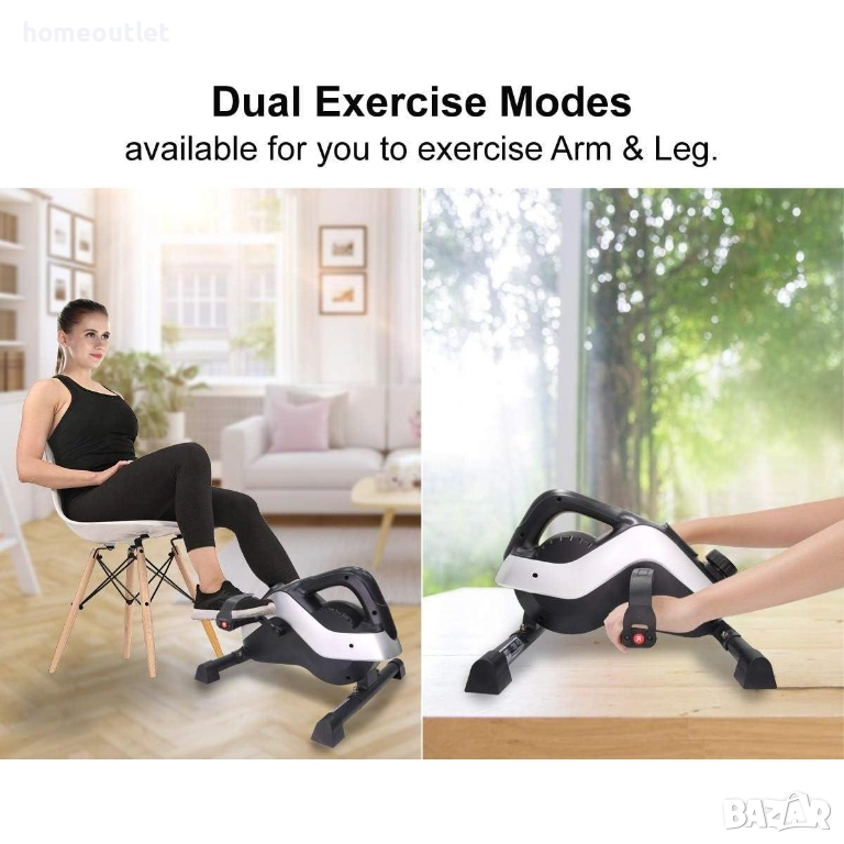 Този мултифункционален мини велоергометър е подходящ както за тренировка на крака, така и на ръце, което го прави идеален за упражнения в дома, офиса или рехабилитация.