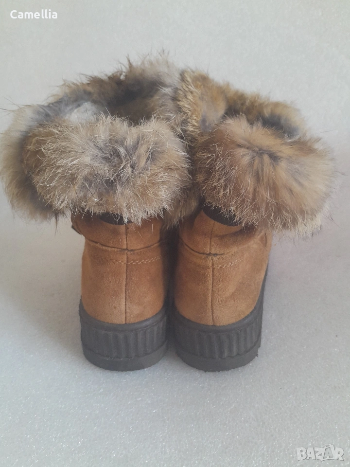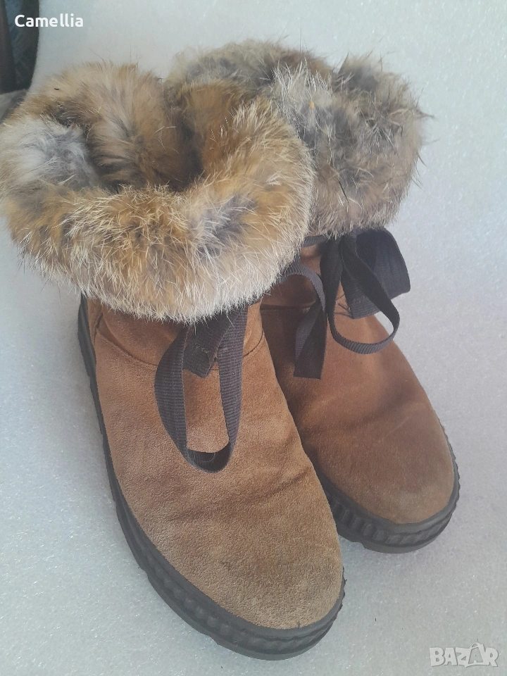 Дамски боти Gino Rossi. Велурени с дебела подметка, пух и връзки. Номер 37-38, стелка 23,5см.