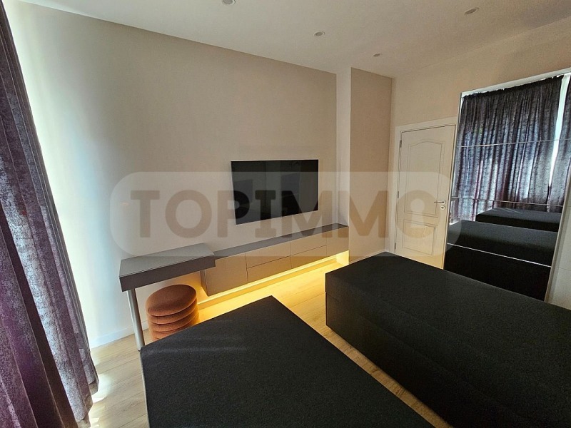 Жилището е раположенно на 1-ви етаж и се състои от коридор, дневна с кухненска част, 2 спални, баня с тоалетна и тераса. Апартаментът е топло и шумозолиран и е напълно обзаведен след основен ремонт, оборудван с висок клас електроуреди, климатици Mitsubishi във всяка стая, телевизори LG 55'' във всяка стая.