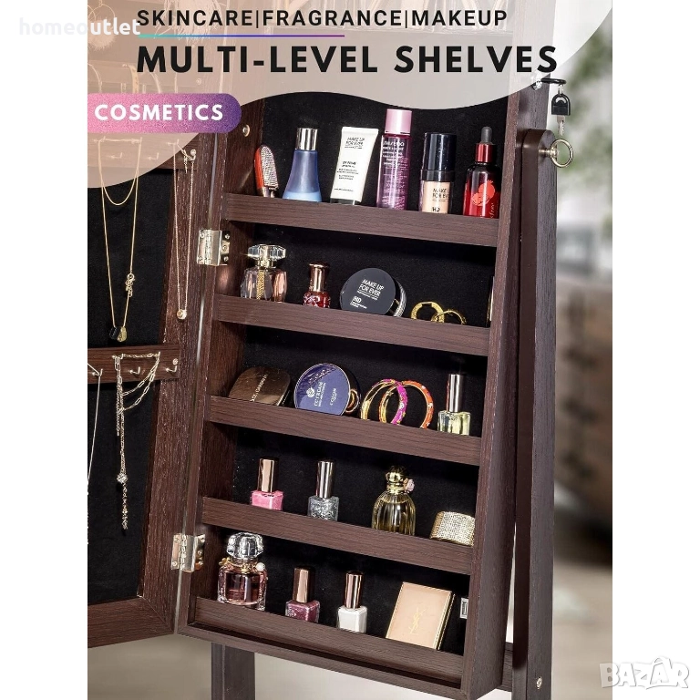 Шкафът може да се заключва с включените в комплекта ключове, което позволява безопасно съхранение на всички ваши бижута.
