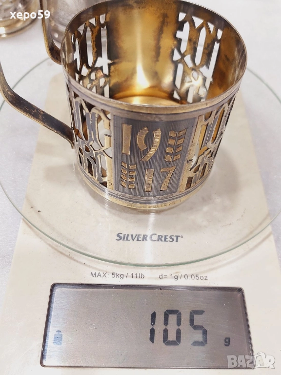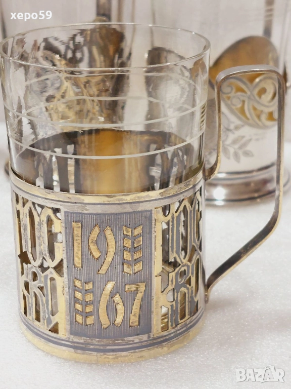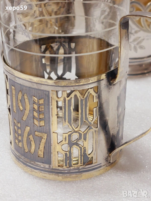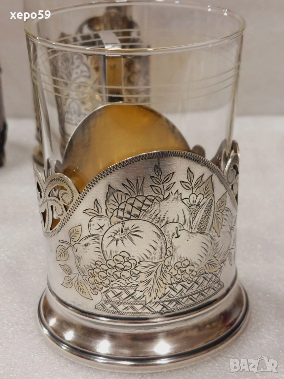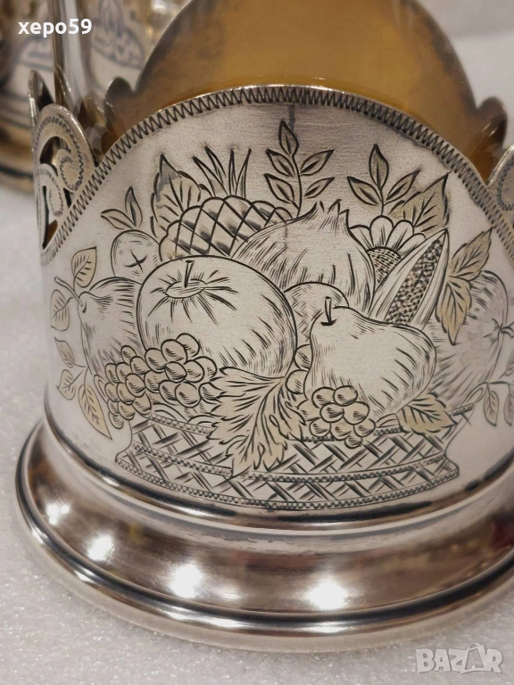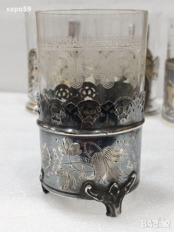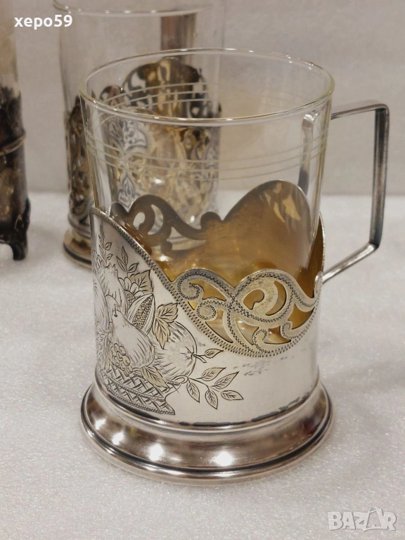 За продажба руски подстакани от времето на бившият Съветски Съюз.Първият коийто е много по масов,тежащ 82 грама е с цена 450 лв.Другият с плодовете с грамаж 110 гр. е с цена от 800 лв.Третият,който е най рядък и е лимитиран пуснат за продажба специално за 50 годишнината от Великата Октомврийска революция е с цена от 1200 лв.И накрая турският които е произведен в края на 19 век е с цена 500 лв.