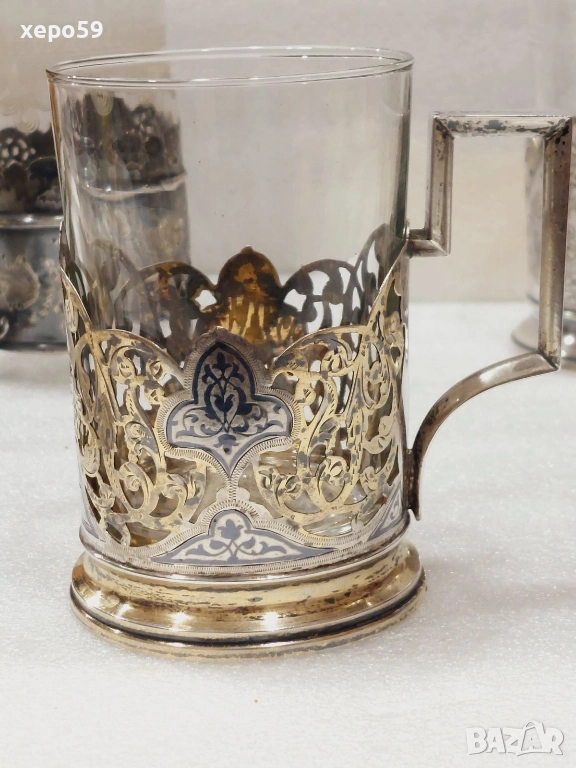 СССР-лот от много редки сребърни руски и един турски подстакани/ сребро 875 → Обява 52825209