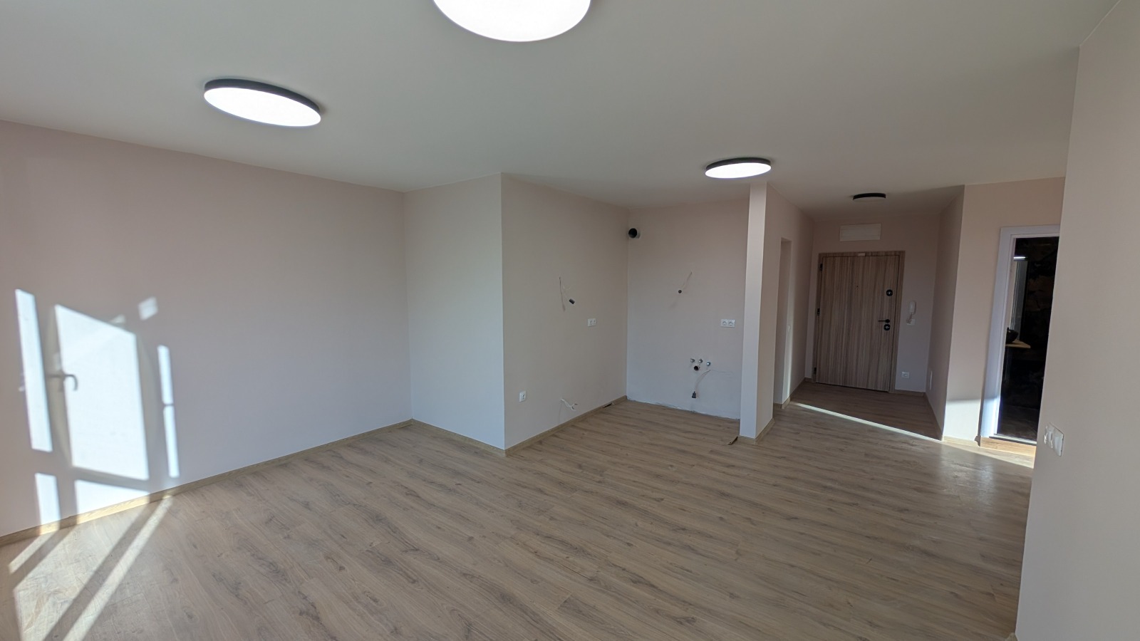Завършеност: Апартаментът е напълно завършен 'До Ключ'. Включва поставени подови настилки (ламинат/гранитогрес), боядисани стени, интериорни врати и изцяло завършена и оборудвана баня/WC. Очаква единствено обзавеждане.