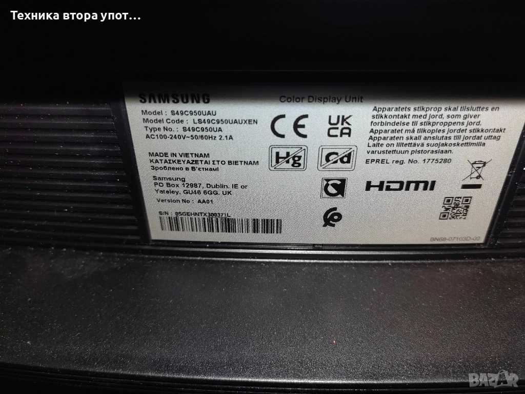 Монитор Samsung LS49S950UAU, снимка 1 - Монитори - 52825610 Монитор Samsung LS49S950UAU, снимка 2 - Монитори - 52825610 Монитор Samsung LS49S950UAU, снимка 3 - Монитори - 52825610 1/3