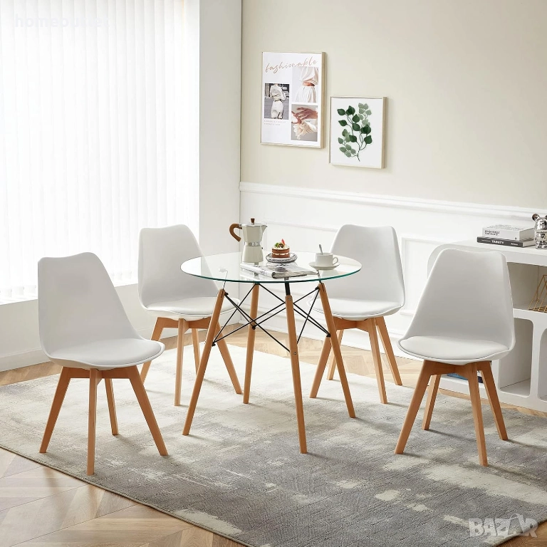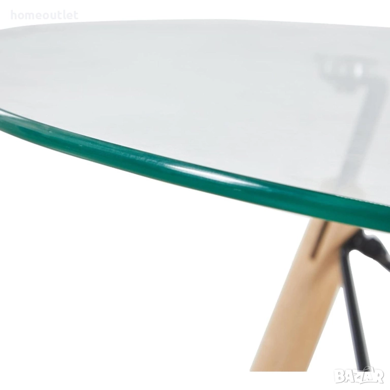 Минималистичният дизайн с прозрачен плот и стабилни дървени крака се вписва идеално във всякакъв интериор – от кухнята до хола.
