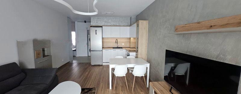 Титан Пропъртис - офис Младост с радост предлага на Вашето внимание тристаен апартамент под наем в жк. Изгрев, София. Жилището с площ 113 кв.м. е разположено на 5-ти етаж от 7 в нова сграда от 2022 г. Изложението е южно. Разпределението включва просторен хол с кухненски бокс, две спални, баня с тоалетна и тераса. Апартаментът е обзаведен, отоплява се на ТЕЦ и разполага с климатик.