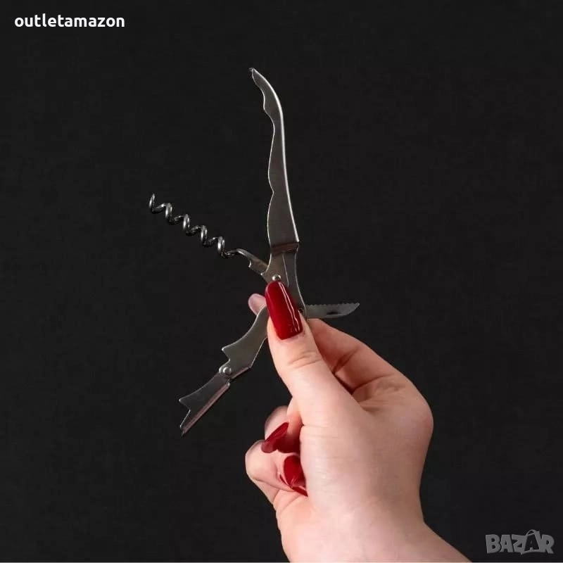 Включва: Лъжица, отварачка за бутилки, 4 фунии, цедка, щипка за лед, мерителна чаша