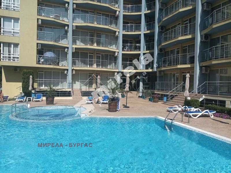 Имотът има жилищен статут; Сградата има асансьор; Продава се с обзавеждане, което подлежи на уточнение; Има физическа охрана; ЕТАП НА СТРОИТЕЛСТВО: разрешение за ползване (Акт 16); ОТОПЛЕНИЕ: климатик; Има 1 балкон/тераса; С довършителни дейности; Има такса поддръжка; Непреходен; Целогодишно ползване; ВИД СТРОИТЕЛСТВО: тухла; ГОДИНА НА СТРОИТЕЛСТВО: 2000 г.; ИЗЛОЖЕНИЕ: гледка към басейна, гледка към озеленен двор; СПАЛНИ: 1; БАНИ: 1; ДОГРАМА: PVC
