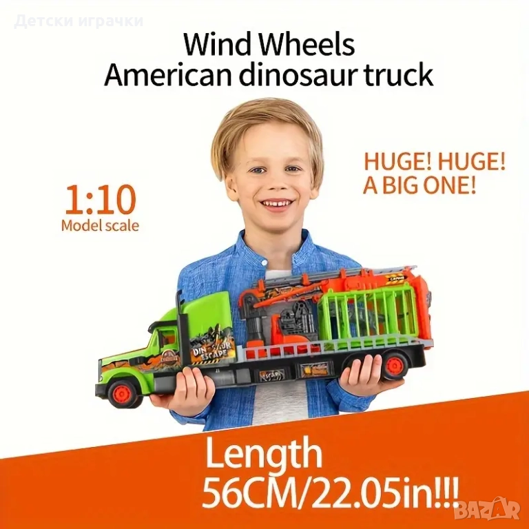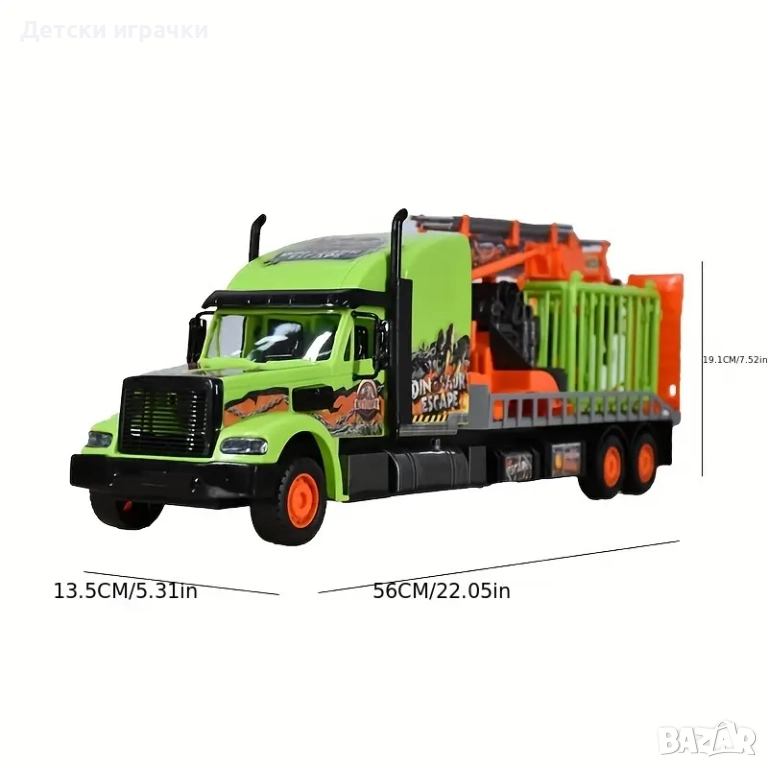Камионът за превоз на динозаври идва! Закарайте динозаврите до всяко място, защото този камион предлага две ремаркета с кран и клетка. Но внимавайте къде ги пускате. Защото след като избягат, те могат да се превърнат в опасност!