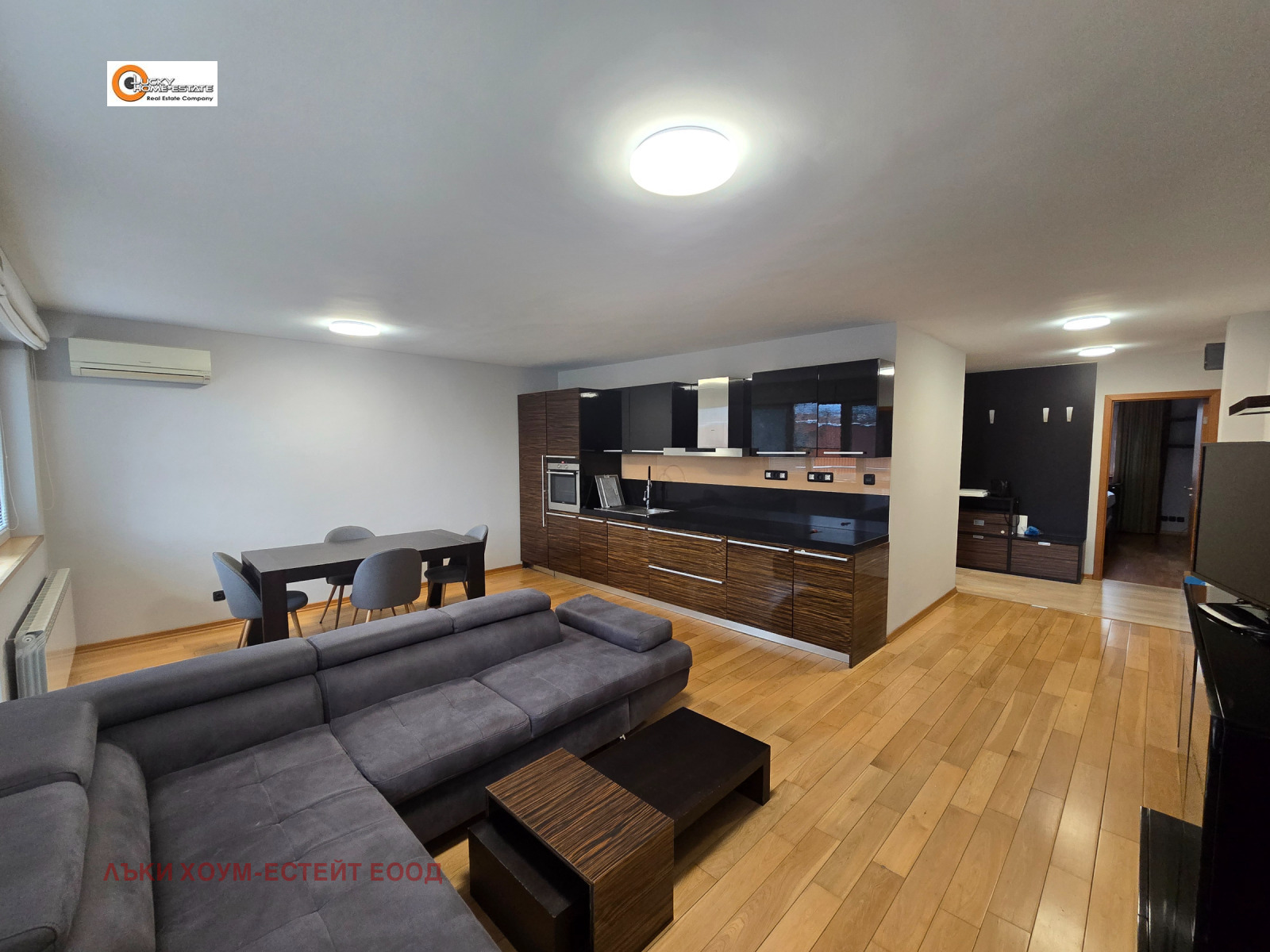 Лъки Хоум Естейт предлага на вашето внимание разкошно, луксозно обзаведено семейно жилище в кв. Гоце Делчев, на ул. Рикардо Вакарини. Сградата е от новото строителство с контрол на достъпа и добре поддържани общи части. Жилището е разположено на обща площ от 125 кв.м и има следното разпределение: