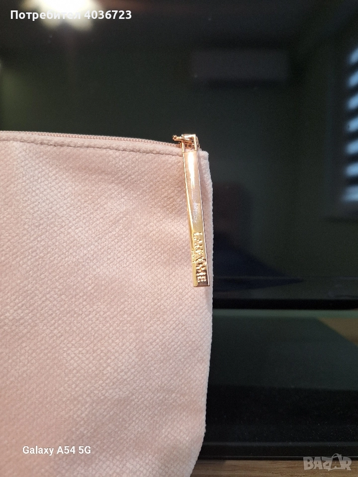 Дамски несесер на козметичния гигант Lancome в цвят пепел от рози и спирала -мостра /2 мл./ Hypnose на същата марка.Несесерът ми е комплимент към направена поръчка.. Имам подобен и този няма да ми бъде нужен. Дължина:23.5 см. Височина:15см. Дълбочина:6 см. Материята е тип плюшена. Към несесера има и подарък мостра на спирала на един от емблематичните продукти на марката -Hypnose. Продуктите са 100%оригинални. Мога да предоставя касова бележка за автентичност ,ако бъде изискана.