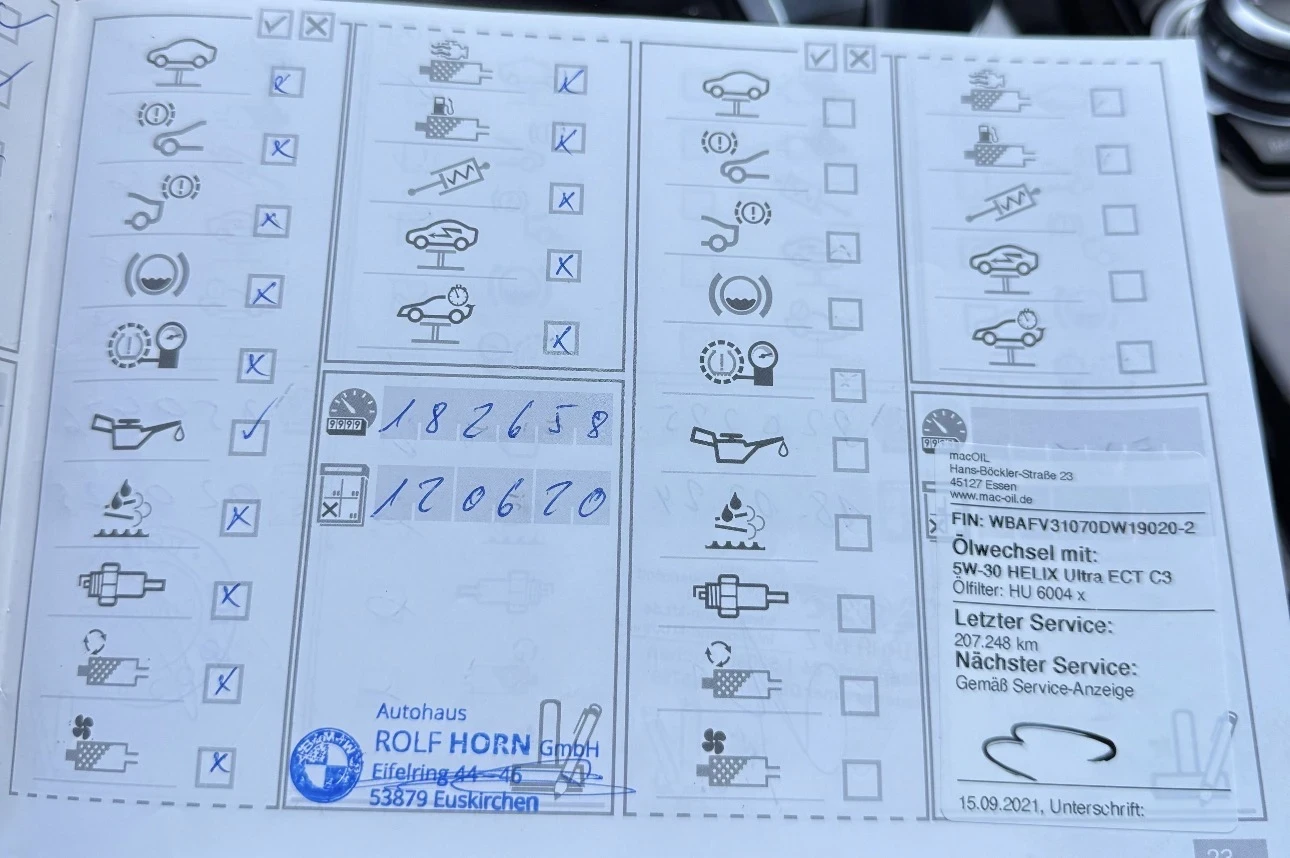 Автомобилът е закупен от Германия от първия собственик. Аз съм вторият собственик. Колата е много добре поддържана и използвана изключително грижливо. Реален километраж Напълно обслужвана само в оторизиран BMW сервиз Сервизна история 4 броя нови зимни гуми DOT 2025 Отлично техническо състояние Двигател и скоростна кутия без забележки M Sport пакет Кожени Recaro седалки Електрически седалки с памет Подгрев на седалките Навигация iDrive мултимедийна система Bluetooth / Handsfree Парктроник отпред и отзад Ксенонови фарове LED дневни светлини Темпомат Мултифункционален M волан Двузонов климатроник Start/Stop система Auto Hold Сензор за дъжд и светлини Ел. огледала Алуминиеви джанти ISOFIX