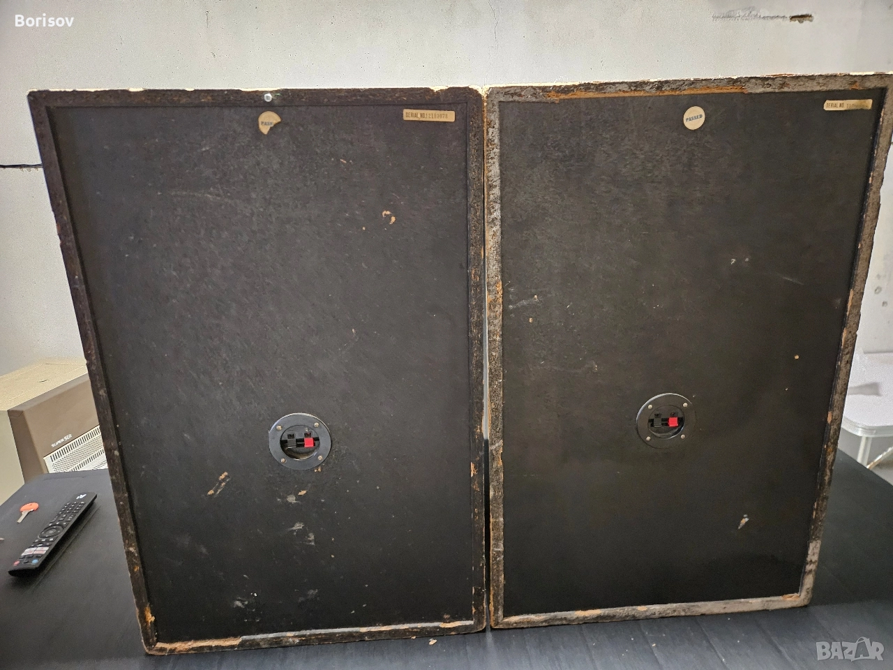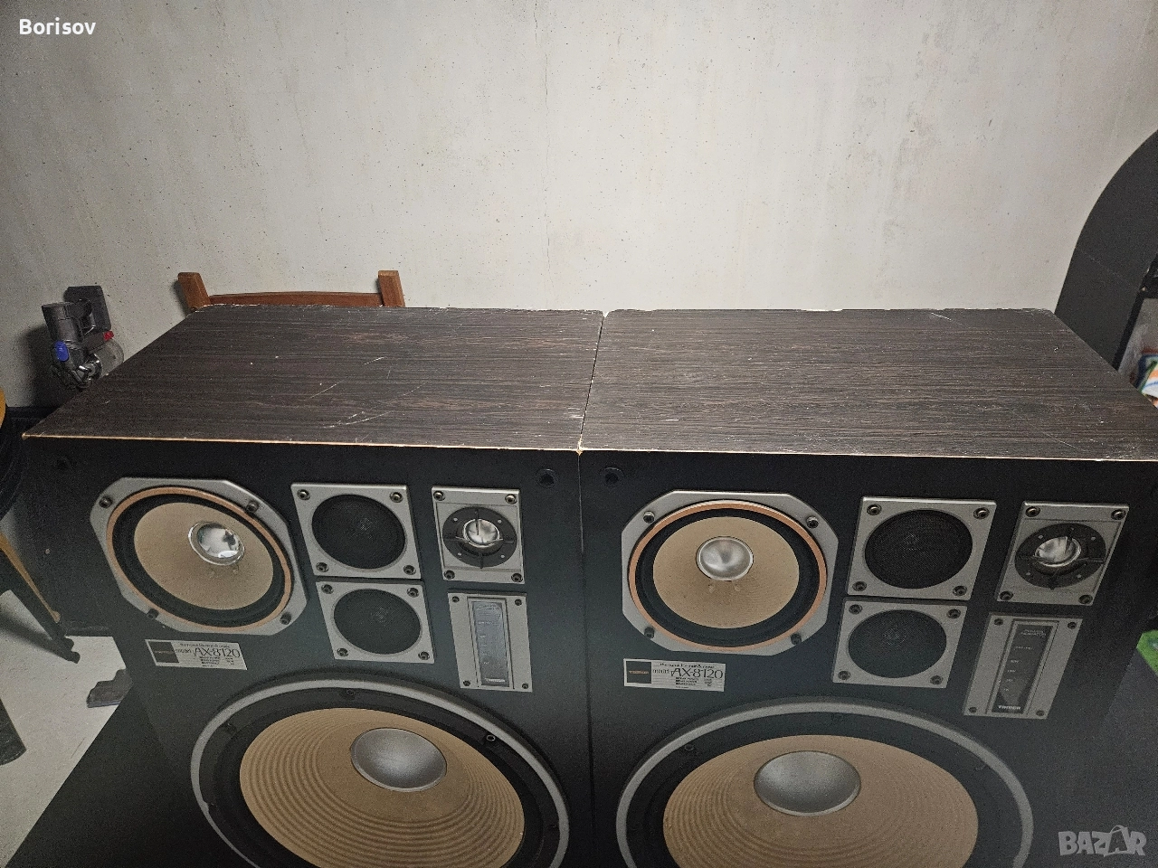 Пищялките в горния десен ъгъл не свирят, но като ги закачиш на усилвател работят, вероятно проблем с филтрите. Гофрата на единия бас е сгъната, не е скъсана и не пречи на работата и. Басовете и средите работят отлично. 15 инча бас. Масивни колони.