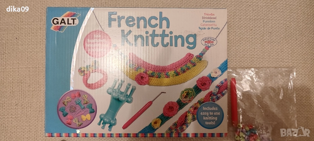 Нова игра "Френско плетиво", с книжка с инструкции и бодове. Кутията е тип куфарче. Може да побере и още прежди по желание. Спиди/ Еконт/ лично предаване