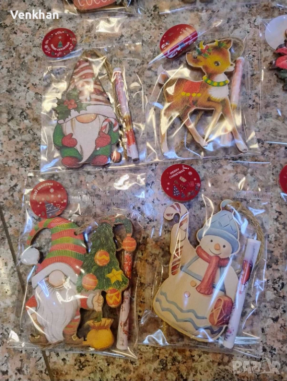 Дървени висулки за елха с коледно пожелание → Обява 52827709