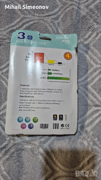 USB 3.0 хъб с 4 порта, индивидуални суичове, черен, снимка 1 - USB Flash памети - 52827751 USB 3.0 хъб с 4 порта, индивидуални суичове, черен, снимка 2 - USB Flash памети - 52827751 1/2