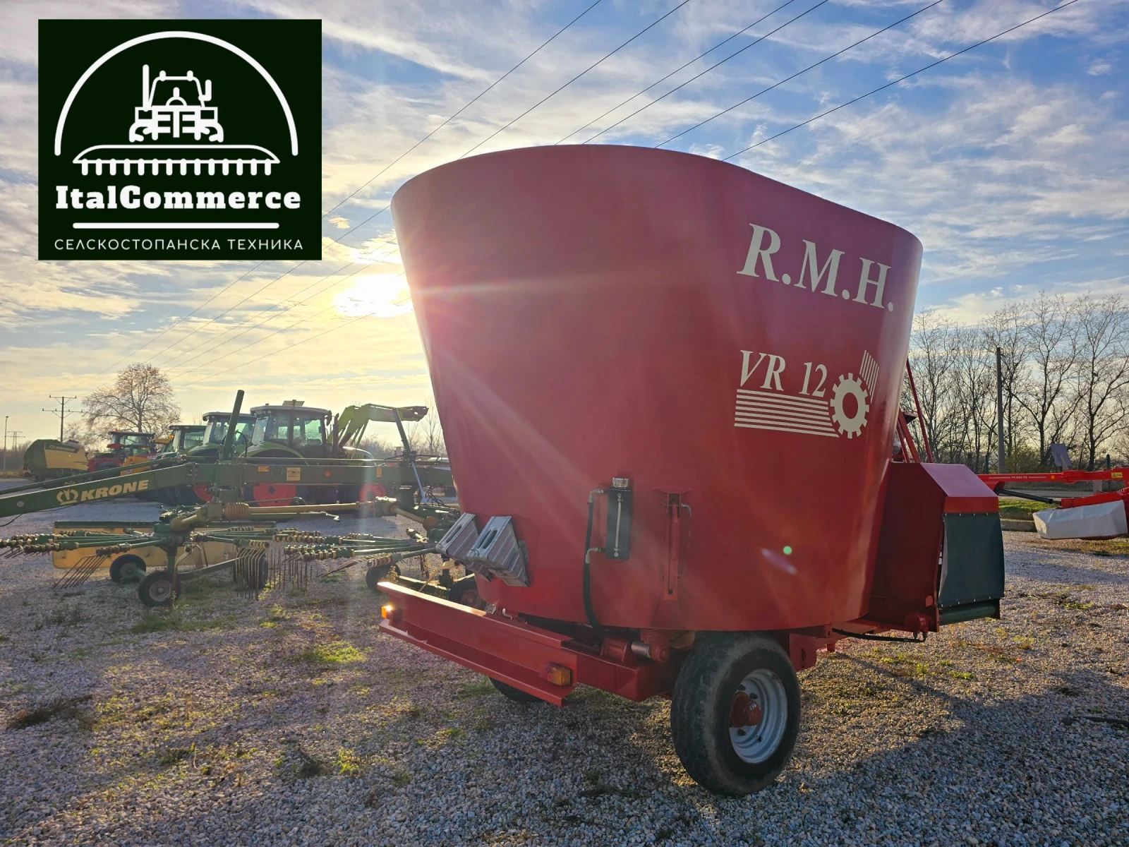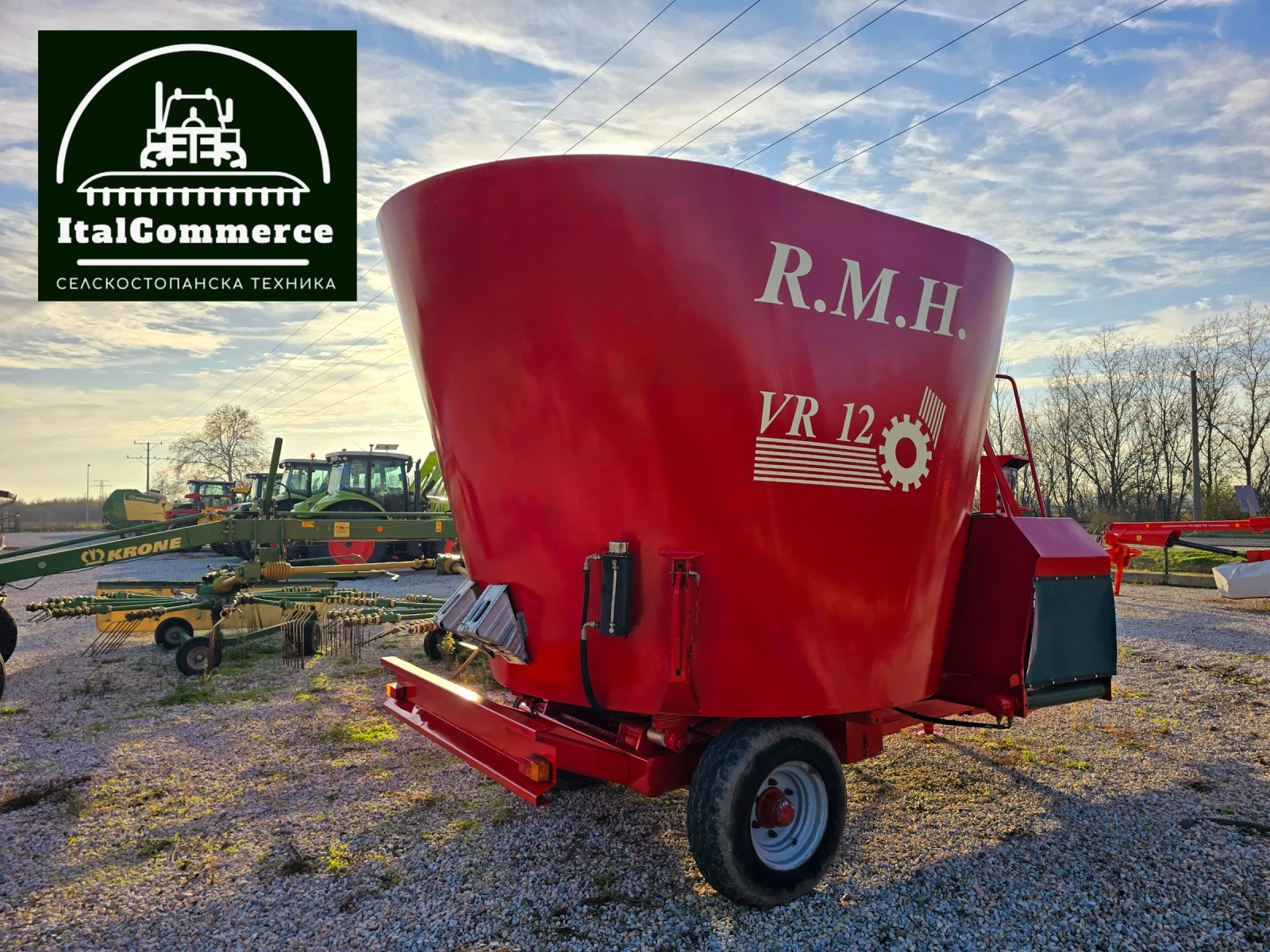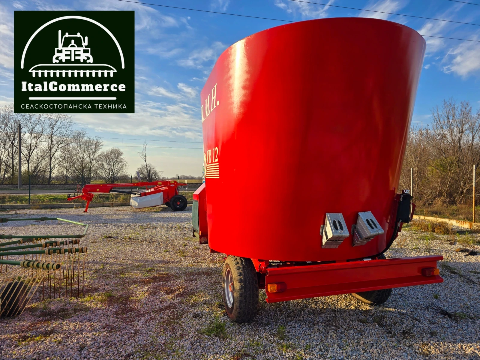 ИТАЛ КОМЕРС ви предлага нов внос миксер 12 кубиков от професионалната марка R. M. H. Двустранно лентово разтоварване, готов за работа! В много добро състояние ! Осигурен транспорт! ЛИЗИНГ ! '' ИТАЛ КОМЕРС '' е директен вносител на сламопреси, рулон преси, торачки, дискови брани, силажирки, пръскачки, трактори, телескопични товарачи, миксери и др.