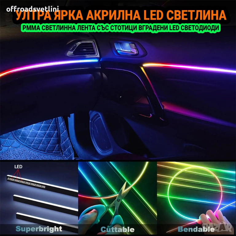 rgb led лента за кола, акрилна led лента, интериорно осветление автомобил, ambient light car, dreamcolor led, led лента с приложение, автомобилна led светлина, usb led лента, rgb осветление кола, интериорно лед осветление, led ленти автомобил, app rgb light, 6in1 led, 10in1 led, 14in1 interior lights, 18in1 interior lights, автомобилно амбиентно осветление, музикално лед осветление, 12v rgb ленти