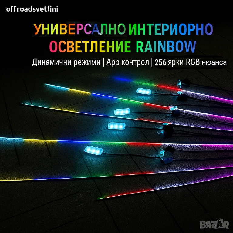 RAINBOW LED амбиентно осветление за автомобили с RGB 256 цвята, 14 в 1