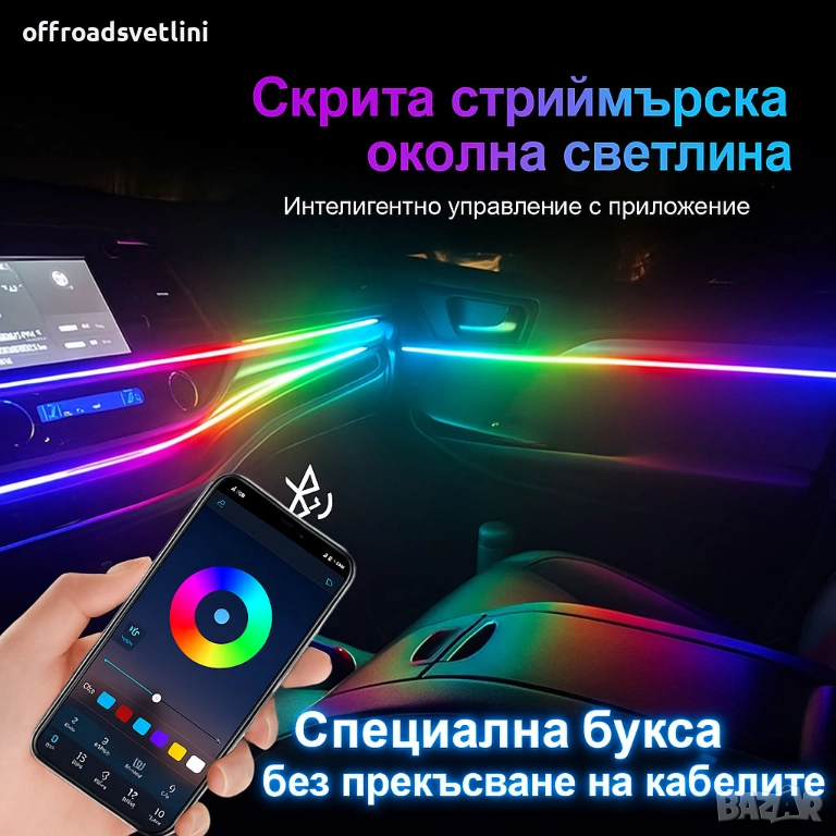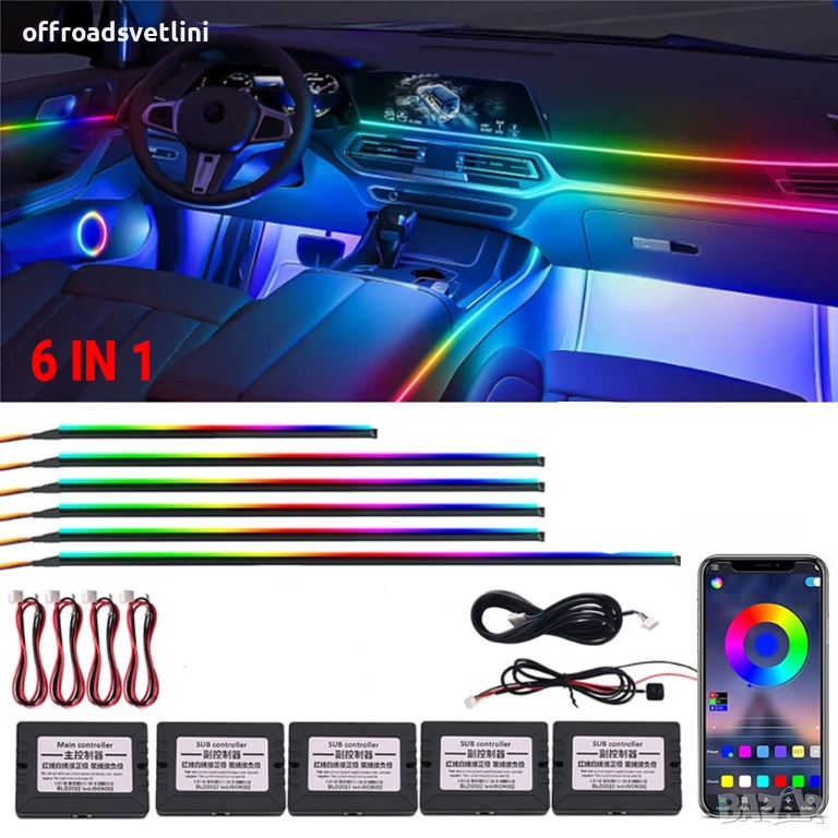 rgb осветление кола, интериорно лед осветление, led ленти автомобил, app rgb light, 6in1 led, 10in1 led, 14in1 interior lights, 18in1 interior lights, автомобилно амбиентно осветление, музикално лед осветление, 12v rgb ленти
