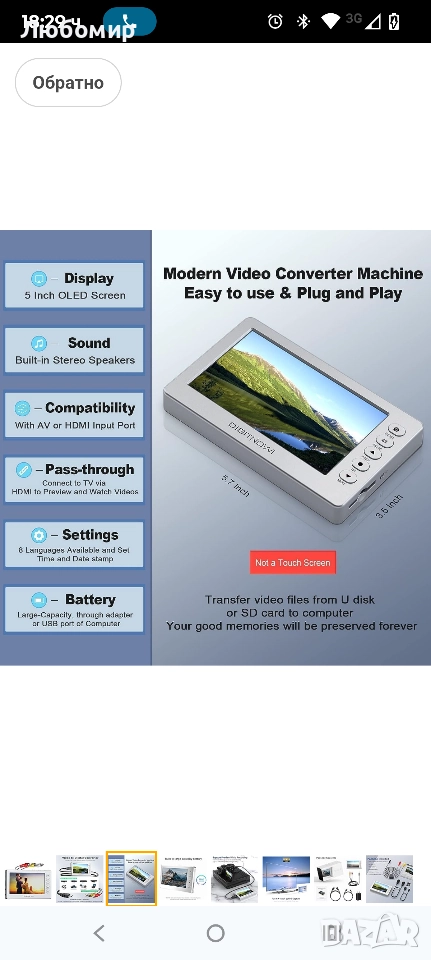 видеокасети в цифров формат или да записва екрана на вашето електронно устройство без нужда от компютър или софтуер. Запазете записаното видео във формат MOV на micro SD карта или USB флаш устройство. Гледайте и преглеждайте видеоклиповете си на 5-инчов OLED екран.