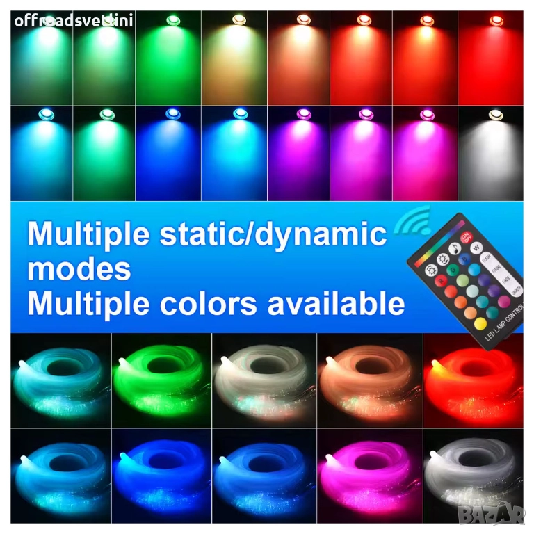 Професионално RGBW Starry Sky LED осветление тип „звездно небе“ за таван на автомобил или интериор. Комплектът използва висококачествени PMMA фиброоптични влакна с twinkle ефект за реалистично звездно сияние. Управлява се чрез мобилно приложение и RF дистанционно, с музикален режим и динамични светлинни ефекти. Подходящо както за автомобил, така и за домашна или парти декорация.