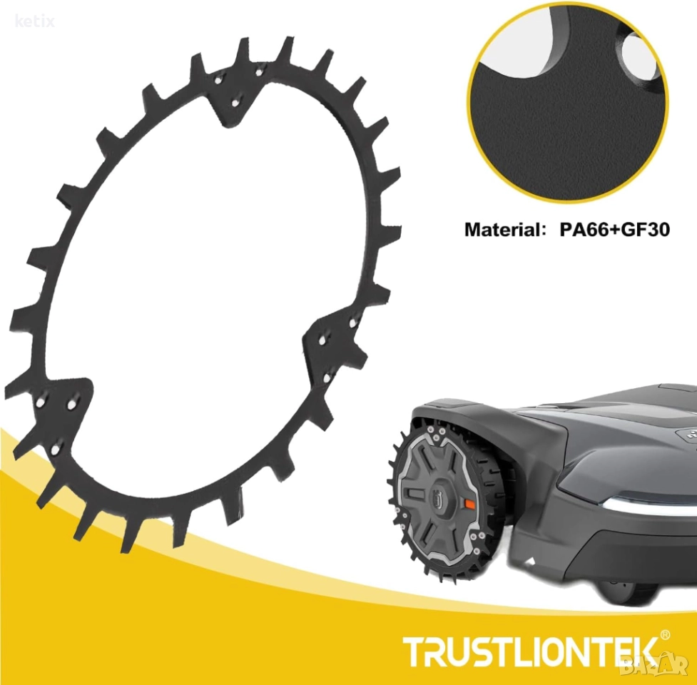 - Увеличете сцеплението на вашата роботизирана косачка с тези шипове за гуми. С подобреното сцепление на вашата роботизирана косачка е по-лесно да се кара нагоре по наклон и не се подхлъзва в дъжда, което води до по-добри резултати.