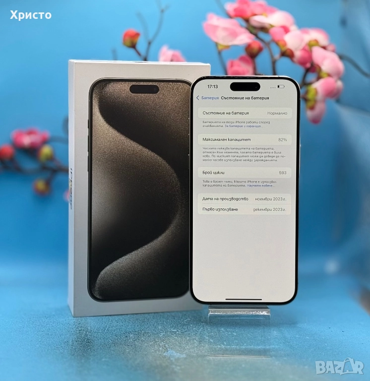 iPhone 15 Pro Max в перфектно състояние – неразличим от нов. Телефонът е изключително запазен, без драскотини, удари или каквито и да било забележки. От първия ден е използван с протектор на дисплея и защитен гръб. Закупен е от Германия преди около 2 години и работи безпроблемно с всички мобилни оператори. Никога не е бил отварян или ремонтиран – напълно оригинален, без сервизни интервенции. Единственият дребен недостатък е по-слабата батерия, което е нормално за времето на използване, но телефонът спокойно издържа цял ден при стандартна употреба и не влияе на работата му.