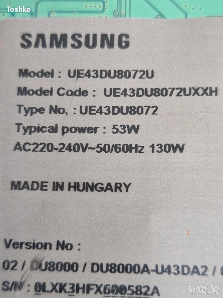 Свалени от работещ телевизор със спукана матрица ТВ SAMSUNG UE43DU8072U