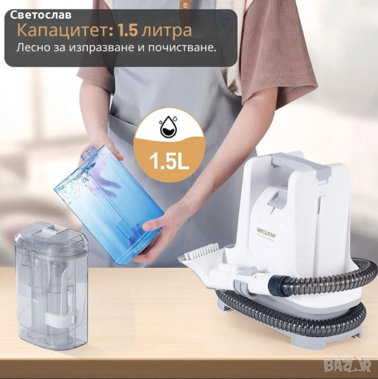 Продавам компактна и мощна машина за локално дълбоко пране тип Spray & Suction (пръскане и изсмукване), идеална за дома и автомобила. Премахва упорити петна 🧽, мръсотия и неприятни миризми от текстилни повърхности.