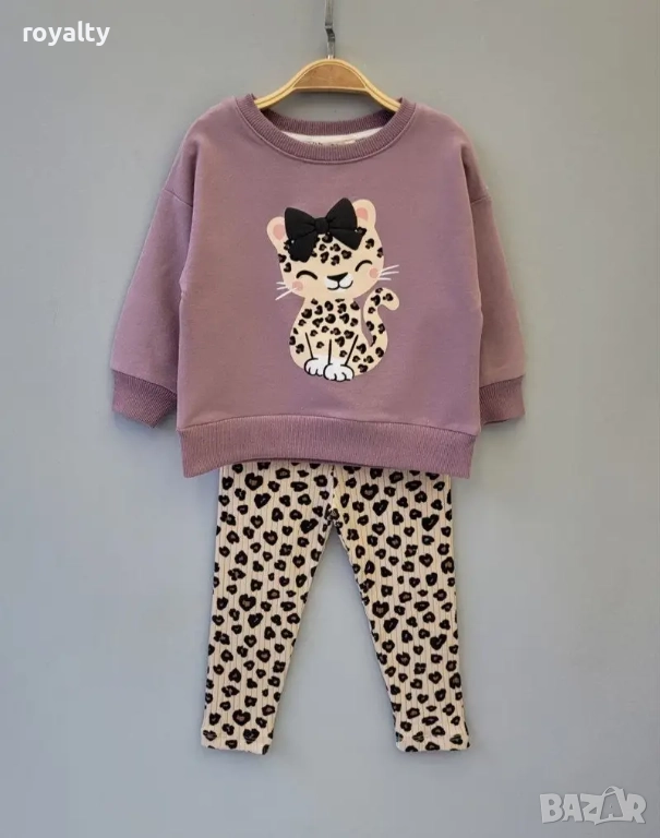 Моделът включва мека блуза с дълъг ръкав, декорирана с коте и модерен рипсен клин с леопардов принт, който придава актуален и забавен акцент. Комплектът е едновременно практичен и модерен, лесен за комбиниране и подходящ за всякакви поводи. Идеален избор за малки модни принцеси, които обичат комфорта и модерна визия!