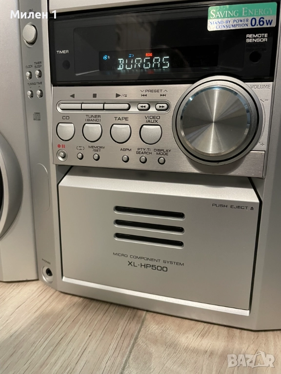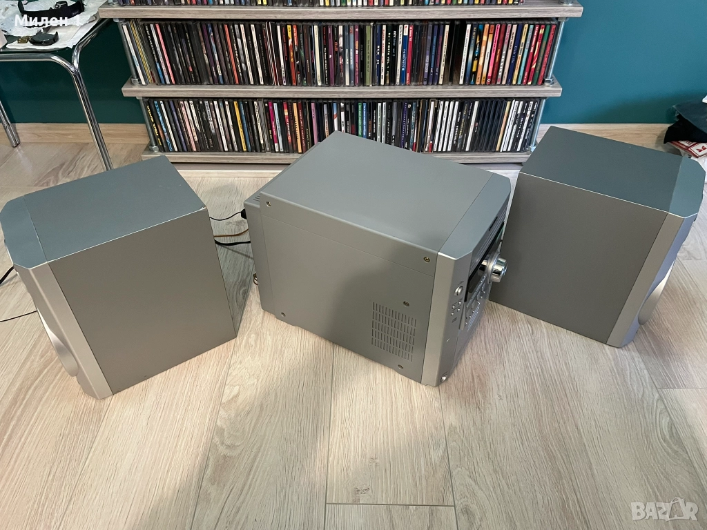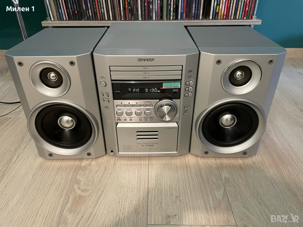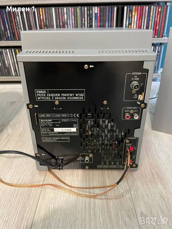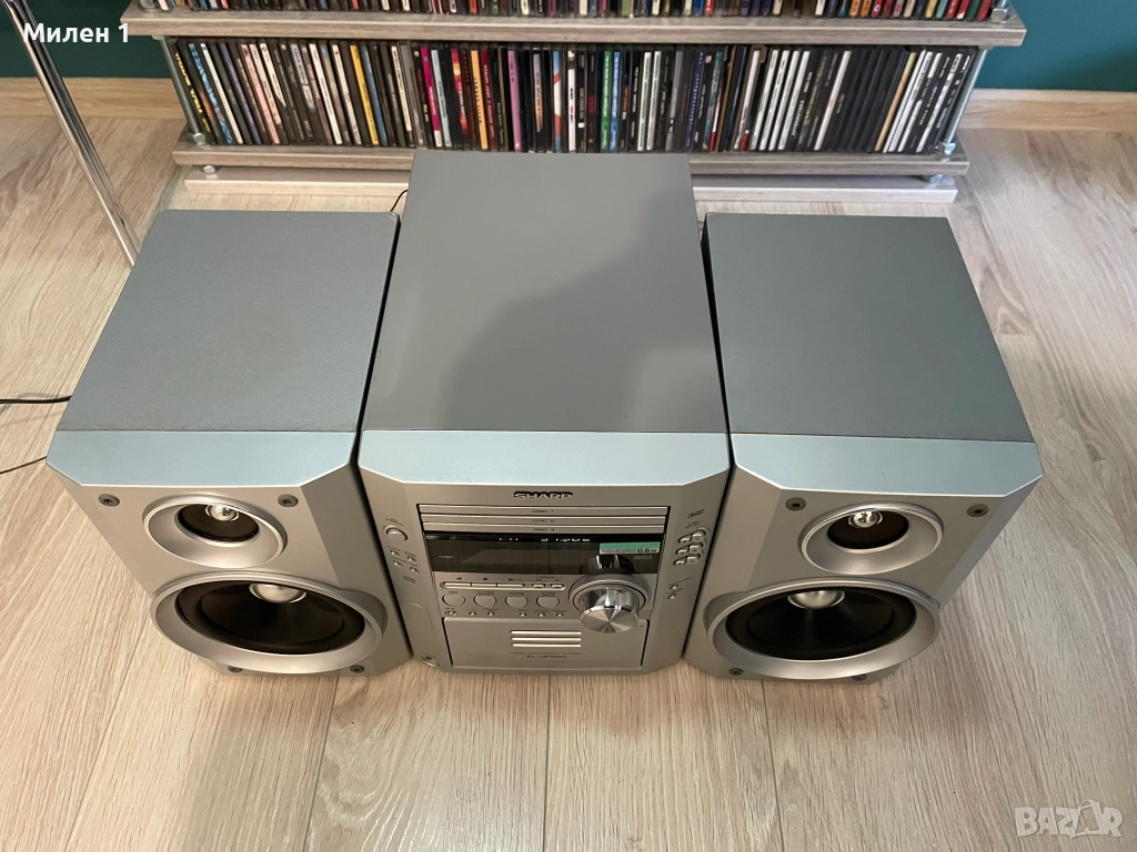 Sharp-качествена аудио система.Работеща,единствено касетата забавя на реверс от едната страна.Качествен и мощен звук,за такъв тип система.Мощен траф и вентилирано охлаждане.Към нея има и дистанционно,което командва основните функции-On/Off усилване/намаляне на звука