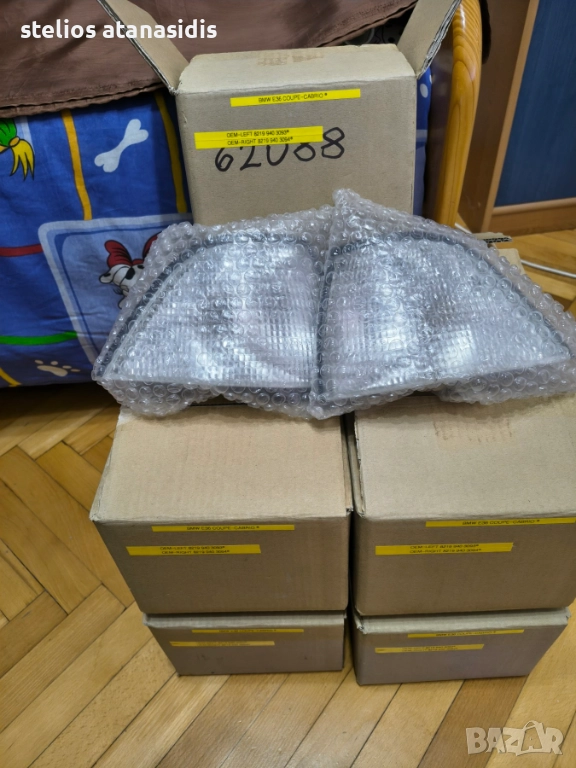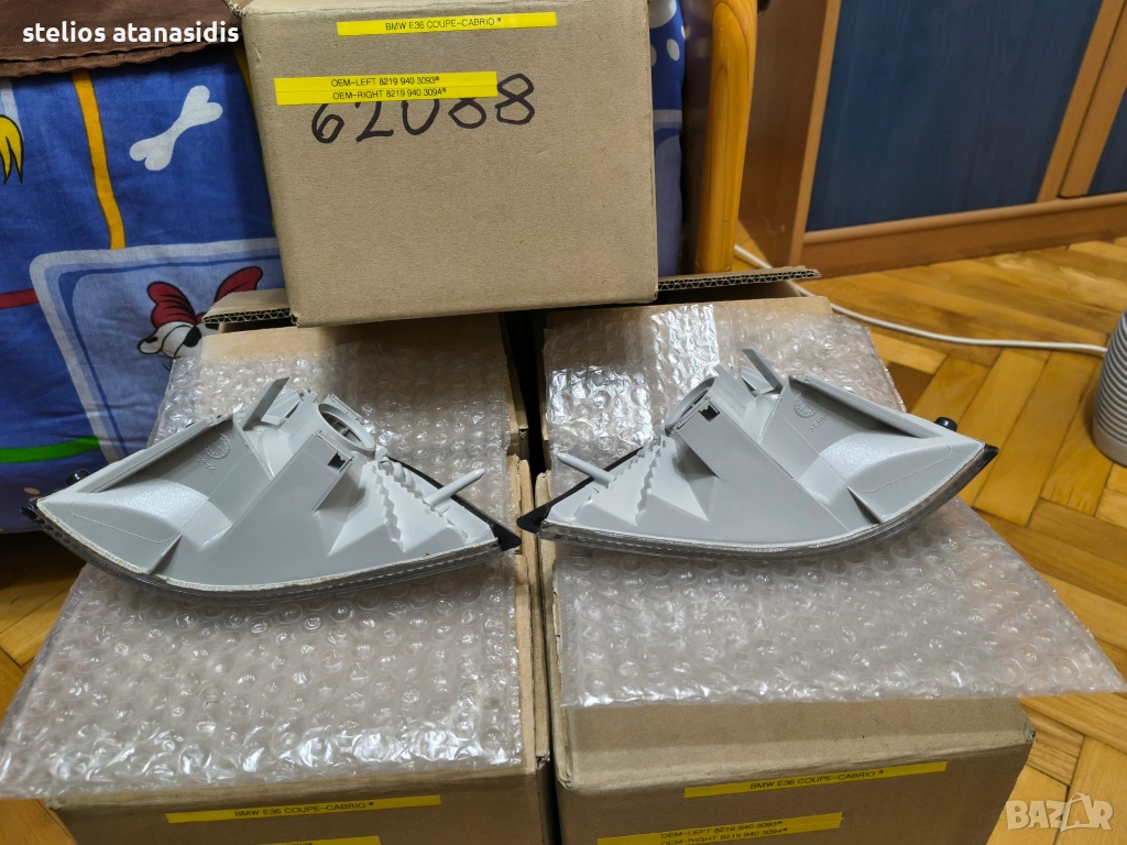bmw e36 coupe cabrio,коледно намаление ,мигачите са напълно оригинални,и са се монтирали заводско в е36 coupe cabrio,оригинални оем номера както следва, E36 2 Door Front Left White Turn Signal / Indicator - 82199403093, E36 2 Door Front Right White Turn Signal / Indicator - 82199403094, мигачите за нови и опаковани в кашон по 2 бройки,всички номера са снимани подробно по мигачите,,логото бмв е леко заличено не знам защо,цената за комплект е 197 лева коледно намаление,ако някой желае да закупи дами пише,ще бъдат изпратени,с куриер,работа във спиди и ще ми бъде по удобно,да ги изпращам като ида на работа,поздрави и весели коледни и новогодишни празници