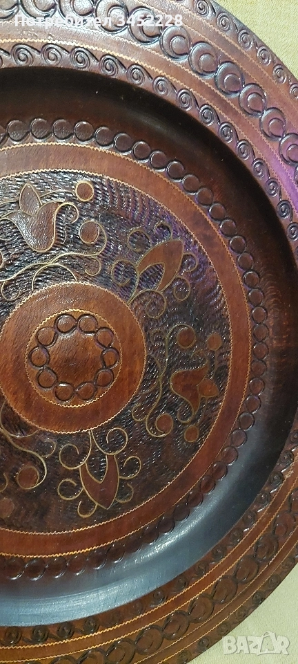 дърворезба пано инкрустирано с месинг 30см за ценители отлично