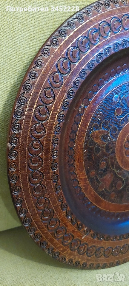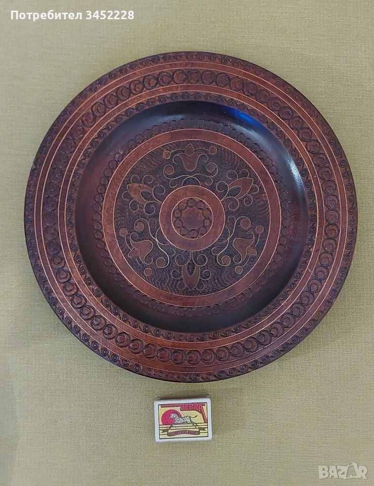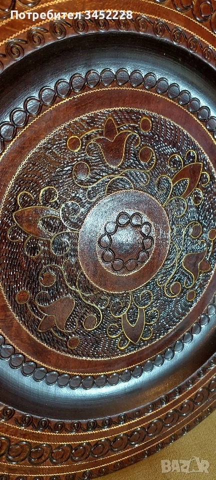 дърворезба пано инкрустирано с месинг 30см за ценители отлично → Обява 52829384